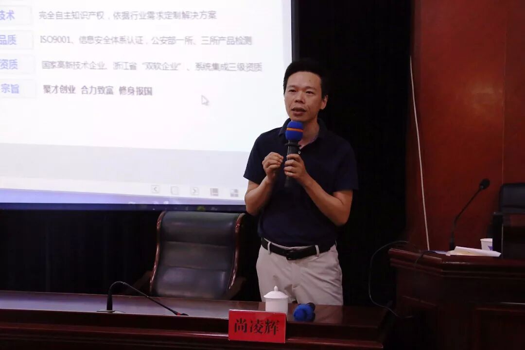 杭州市温州商会副会长、捷尚股份有限公司董事长尚凌辉介绍了“2020工程”建设方案。捷尚(证券代码:832325)是做视频分析技术研究与产品开发的高新技术企业,目前视频大数据与公共安全这一领域是一片蓝海,尚会长欢迎各地温商一起合作。